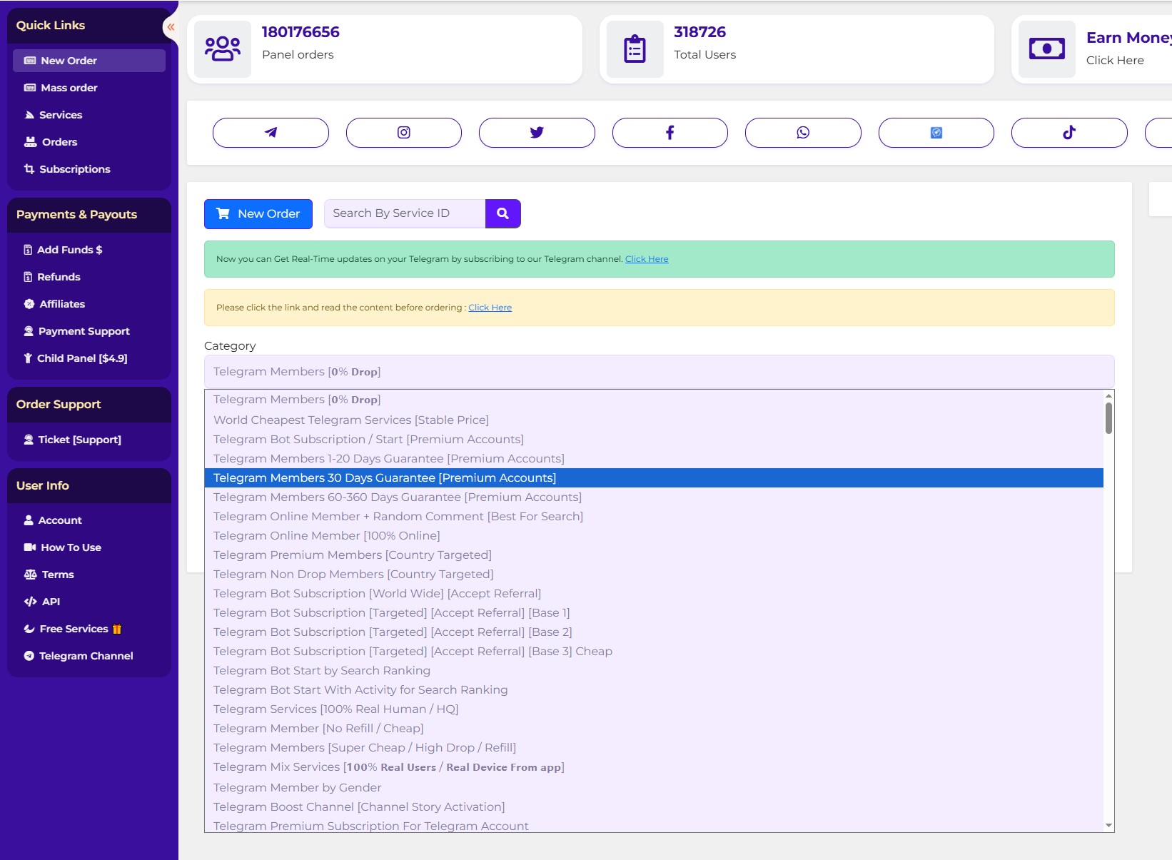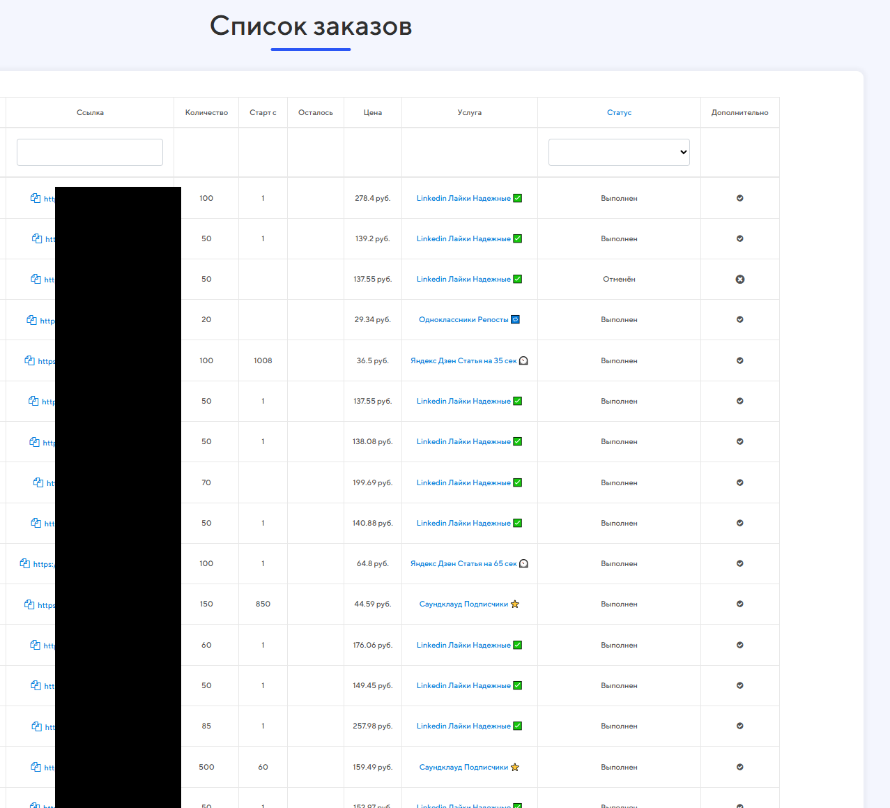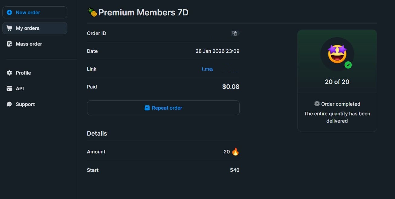 Рекомендую перед большими объёмами всегда тестировать на небольших количествах, и если услуга хорошо сработала - только тогда заказывать более крупные заказы. Есть также уникальные услуги, которых не видел у других поставщиков смм услуг.