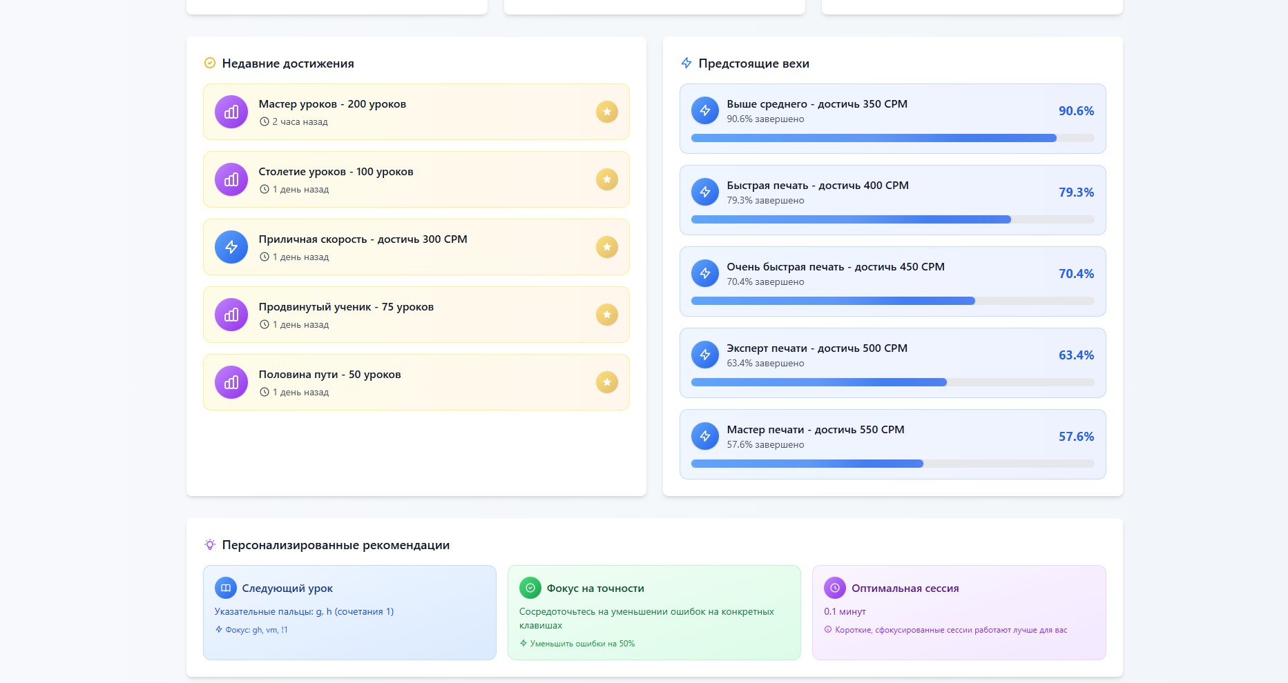 Пользовалась когда то другими сервисами, где "тупо" нужно набирать текст, позанималась раз и забыла. На этом сервисе - просто затягивает, урок за уроком, на одной волне! Даже выходить с него не хочется, потому что уроки простые, а мозг начинает кипеть от набора (по технике!), прям чувствуется эффективность!